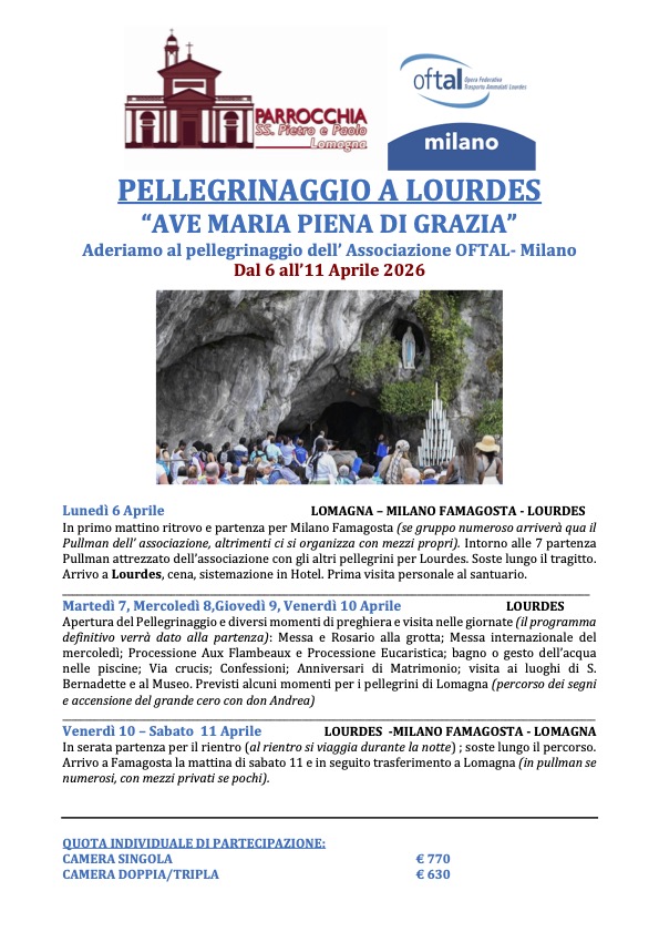 “AVE MARIA PIENA DI GRAZIA” Aderiamo al pellegrinaggio dell’ Associazione OFTAL- Milano