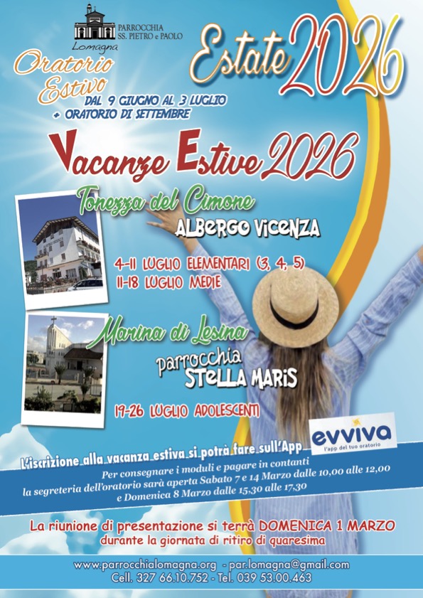 Vacanze estive 2026 da admin | Gen 28, 2026 | Avvisi oratorio, Avvisi parrocchia Scarica la locandina in PDF