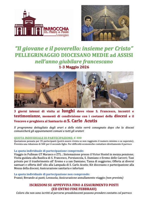 In occasione dell’ Ostensione pubblica delle spoglie di S. Francesco e dopo la canonizzazione di S. Carlo Acutis dal 20 al 22 Marzo 2026